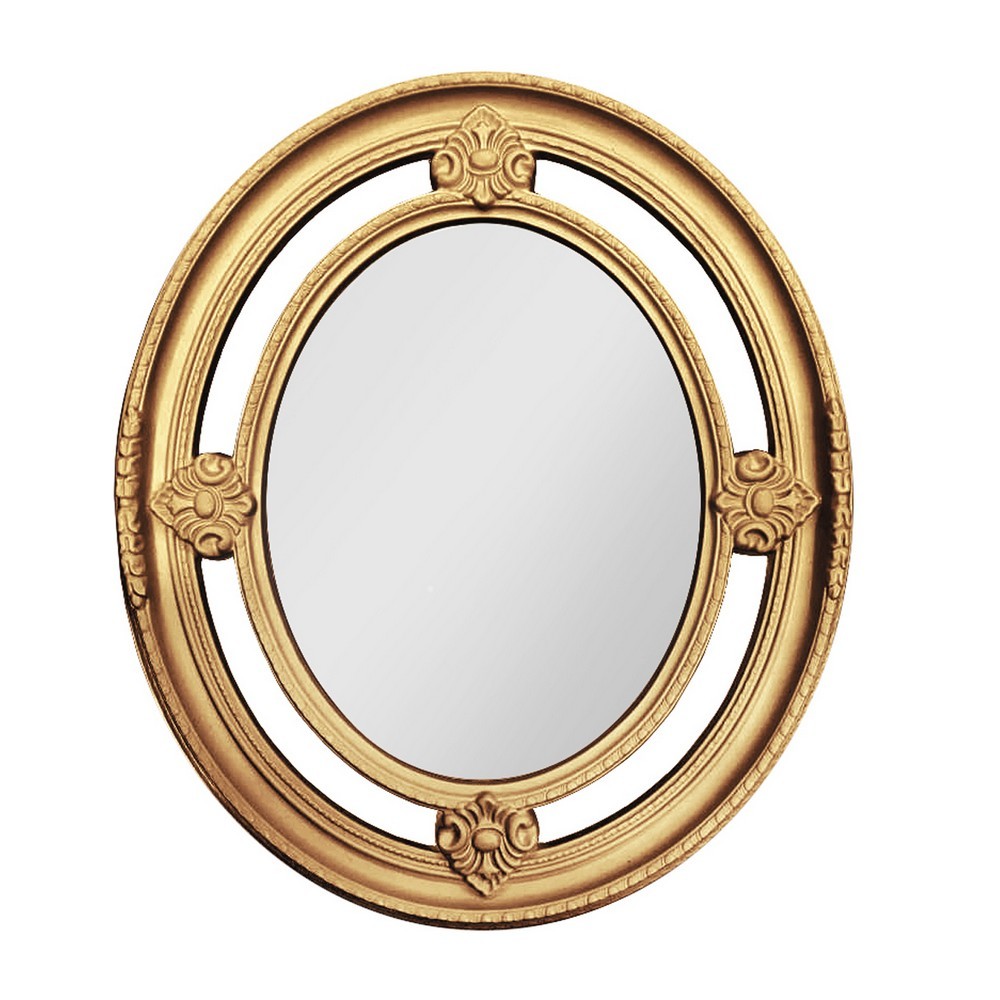 Средних размеров овальное настенное зеркало с золотой патиной.
