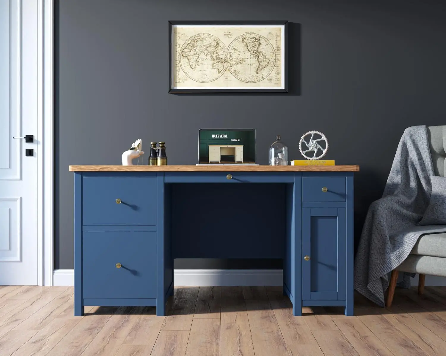 Основательный и практичный рабочий стол "Jules Verne" сочетает в себе все эти характеристики.