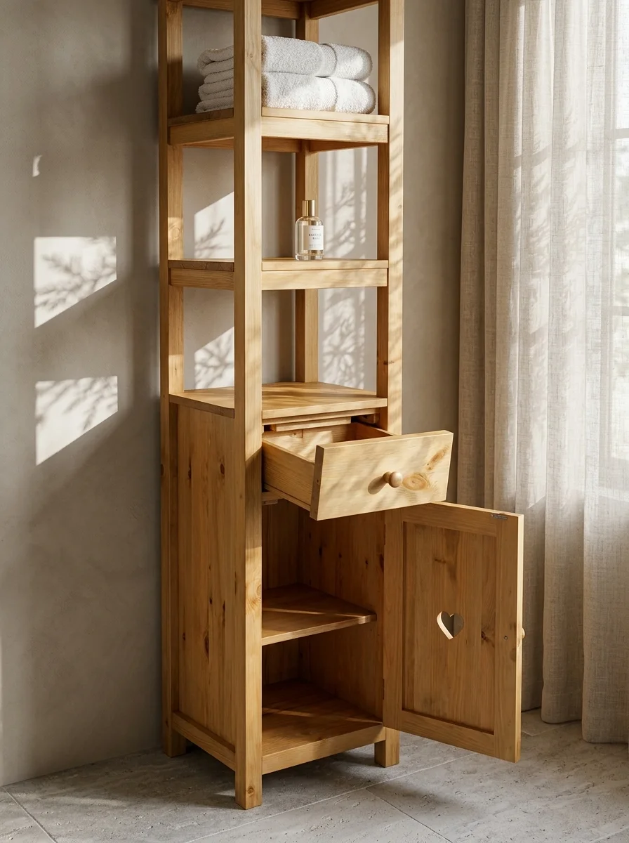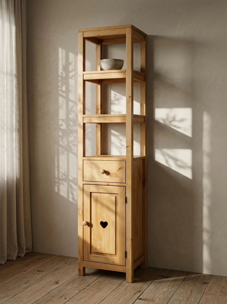 Корпус, полки и дверцы изготовлены из массива сосны.