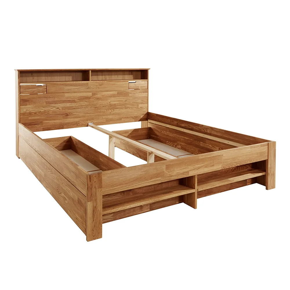 Двуспальная кровать «Далия» — это идеальное сочетание стиля, комфорта и надёжности. Каркас кровати изготовлен из натурального дерева – массива дуба. Из шести вариантов отделки можно выбрать тот, который лучше всего подойдёт к вашему интерьеру.