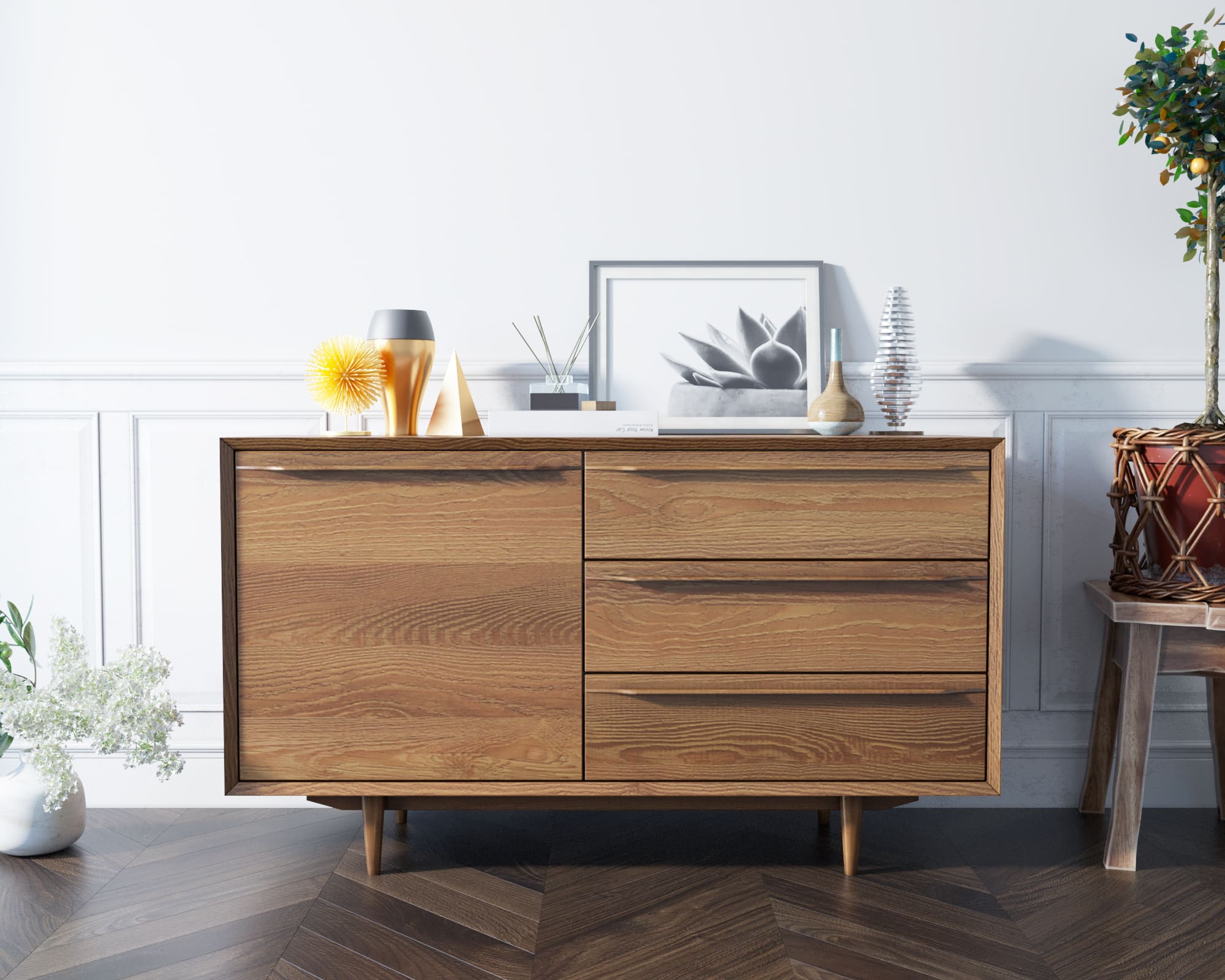 Комод "Bruni" изготавливается вручную из шпона ясеня.