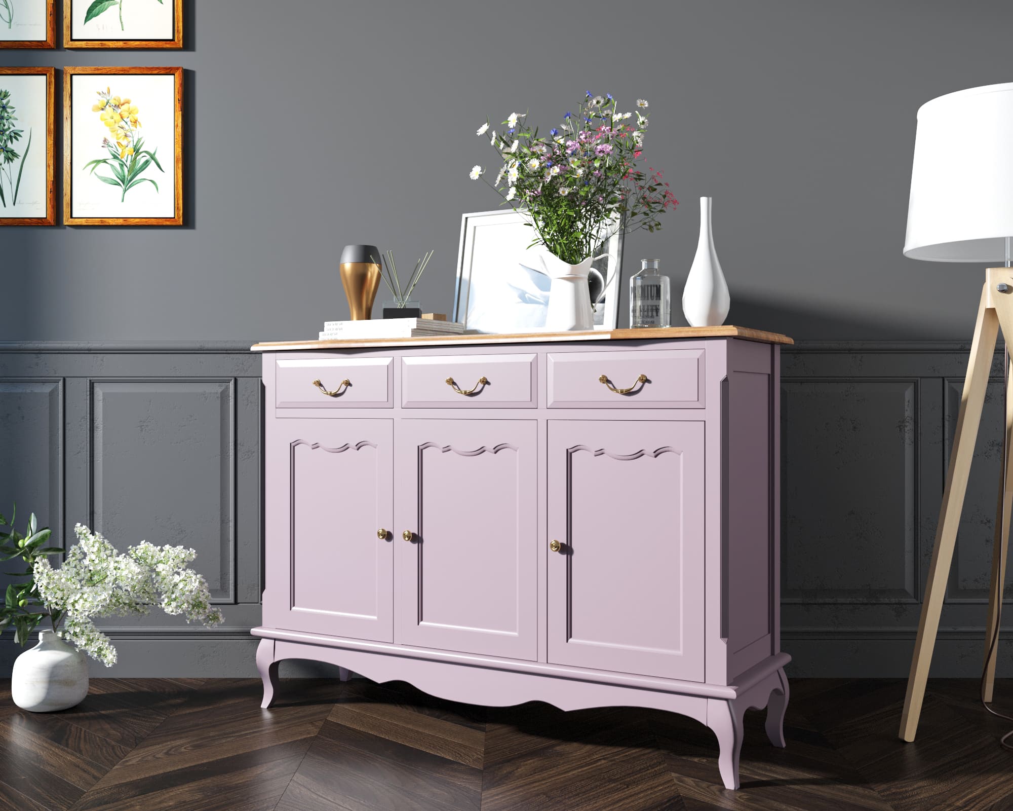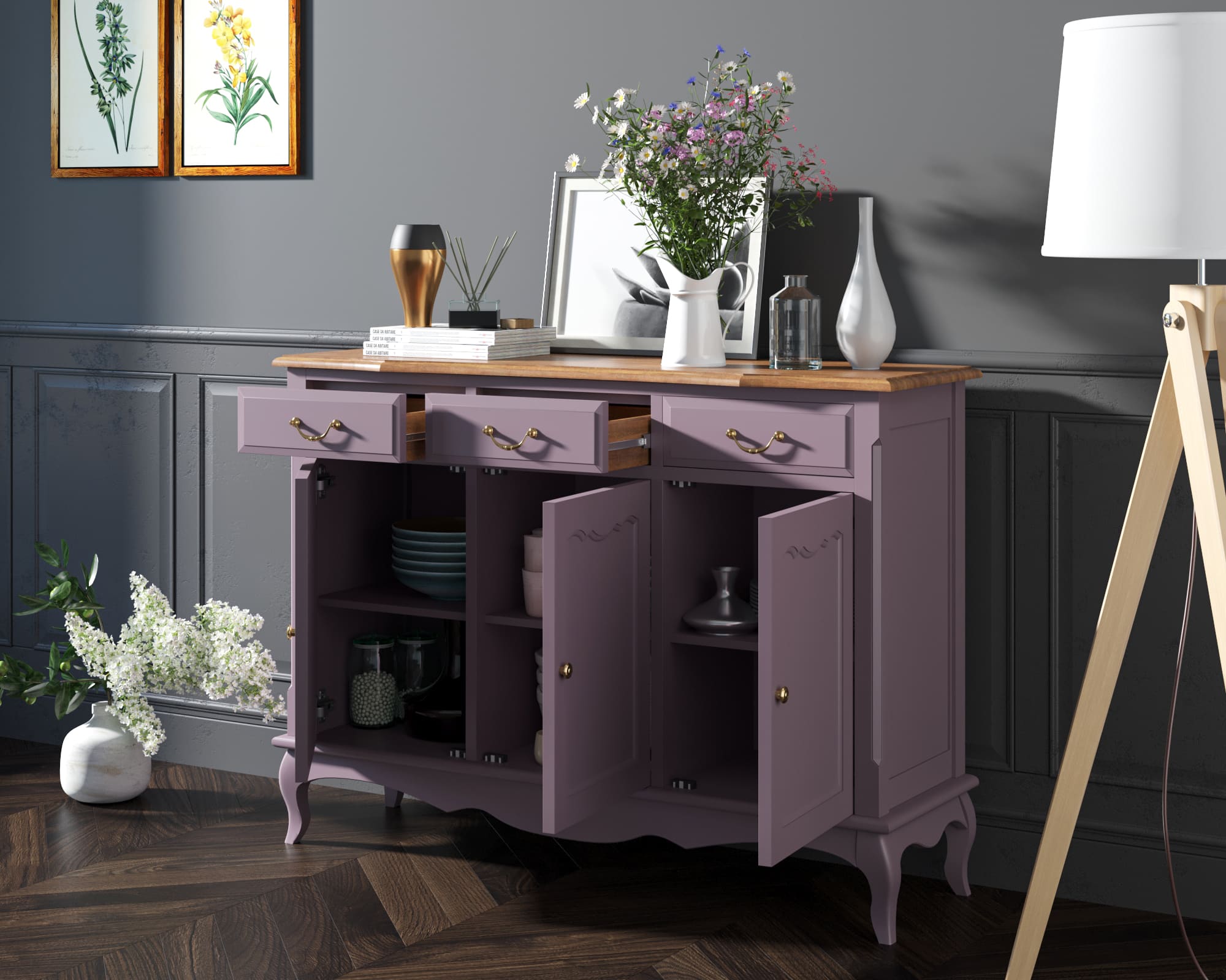 Комод 3 ящика массив "Leontina Lavanda" (3 ящика и 3 двери)