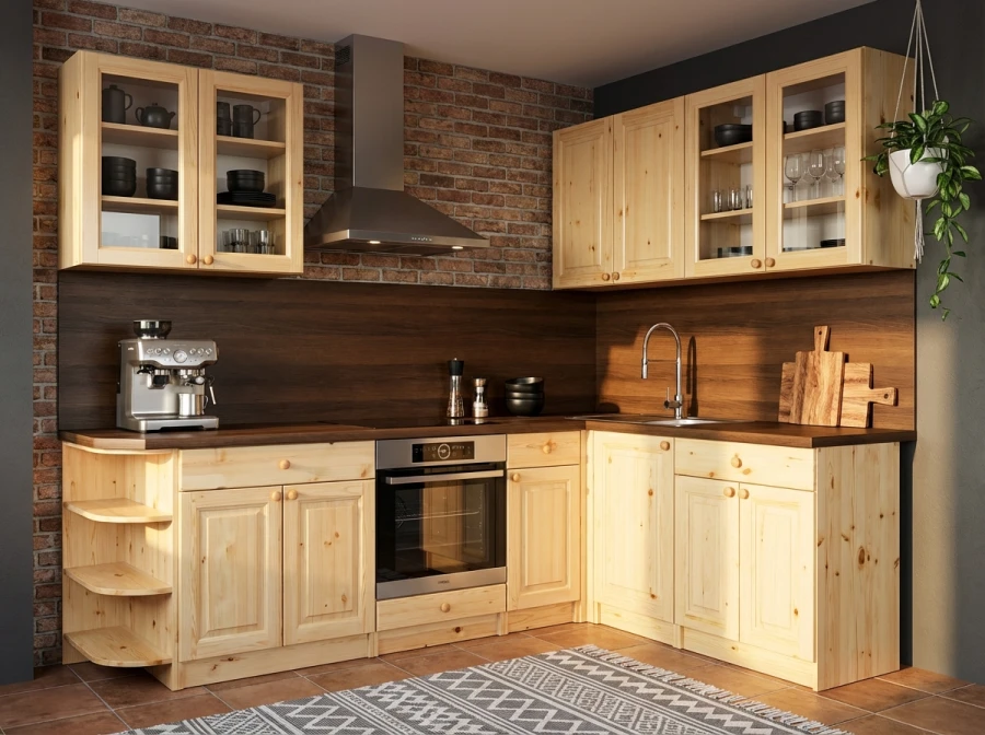 Настенный кухонный шкаф «Весури» из массива карельской сосны.