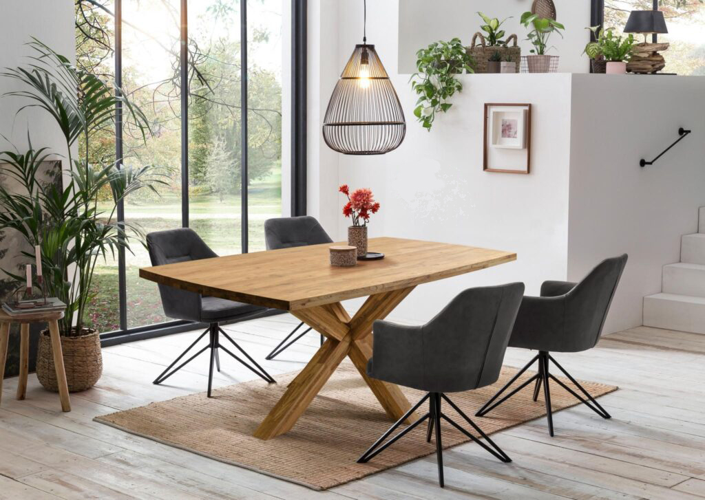 Обеденный стол «Декстер 5» изготавливается из долговечного природного материала – массива дуба. Стол отличается простым и стильным дизайном, а, главное, вместительностью – за ним могут разместиться 8-10 человек. Еще одно преимущество – устойчивые наклонные опоры.