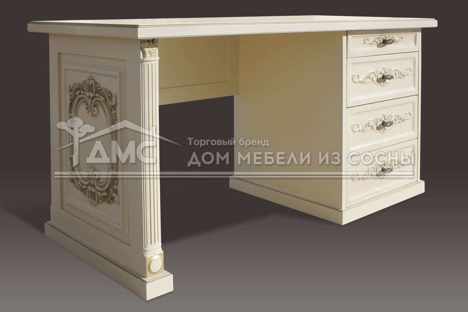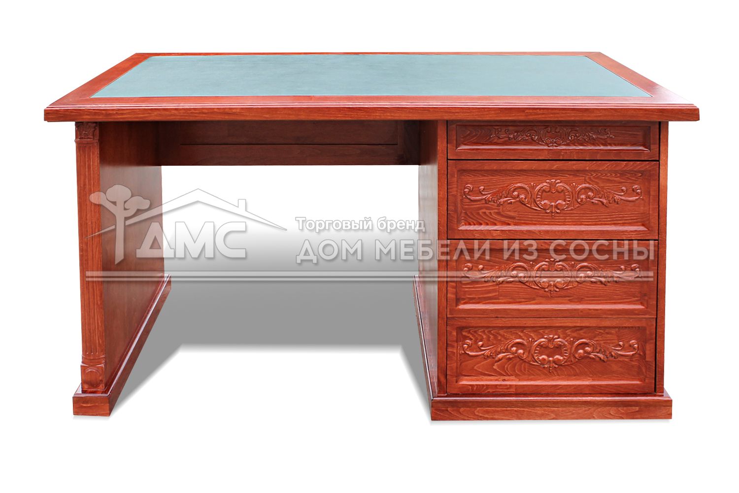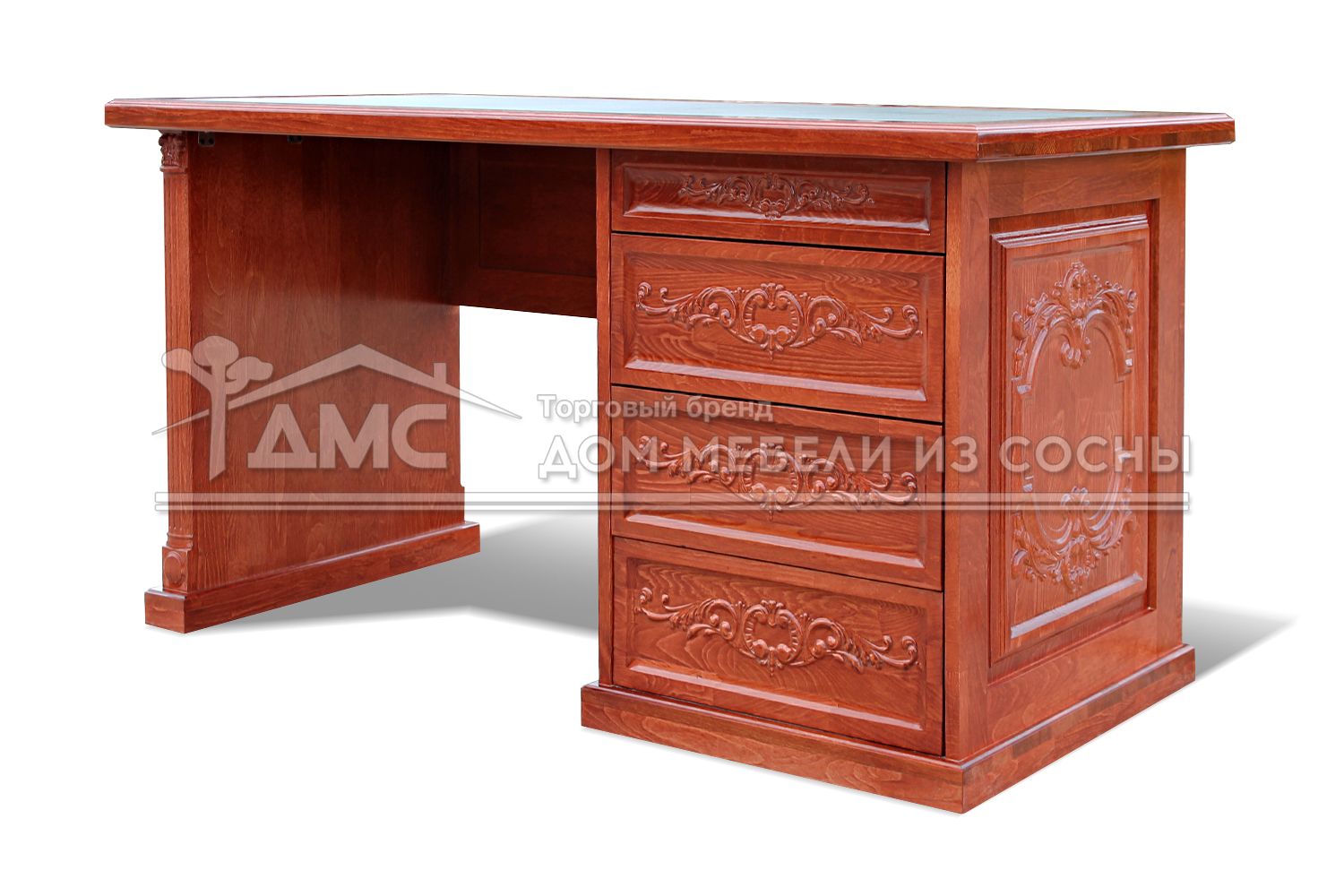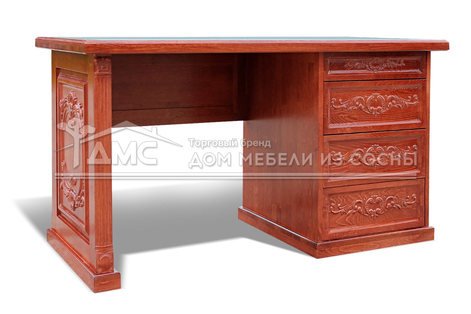 Стол письменный Харвард создан из экологичного материала — массива сосны. Конструктивно он состоит из широкой столешницы, декорированной кожаной вставкой, и четырех выдвижных ящиков, один из которых меньше других по высоте. Фасад ящиков украшен изумительной по красоте резьбой, которая является популярным способом обработки деревянных поверхностей в мебельной индустрии. Данный товар не только отлично украсит рабочую зону, но и будет самым важным предметом её обстановки. При желании можете выбрать другой цвет для стола Харвард.
